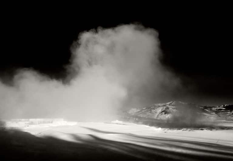 This shot was taken during a very cold morning in Mammoth Hot Springs, located in Yellowstone National Park. There's a nice path along the upper terrace. The steam produces some very strong contrast, considering the sky is perfect blue and the ground has a thick pillow of fresh snow. This location during a winter sunrise is very inspiring. …
